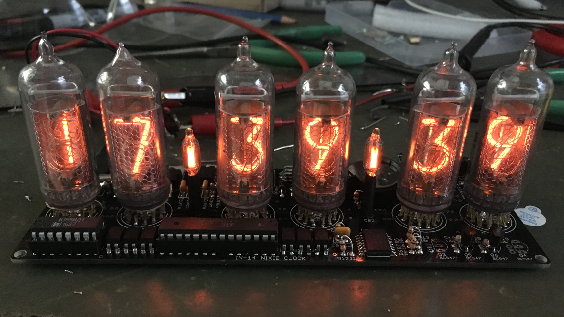 Back in 2007, I hopped a $1 bus from Chicago to Indianpolis to visit my IRC friend Kevtris. His place was filled with electronics projects and hacked video game consoles. One of the projects he showed me was a clock he built using nixie tubes, weird glass tubes that displayed selected numbers inside using high voltage. I knew I wanted to build one too.